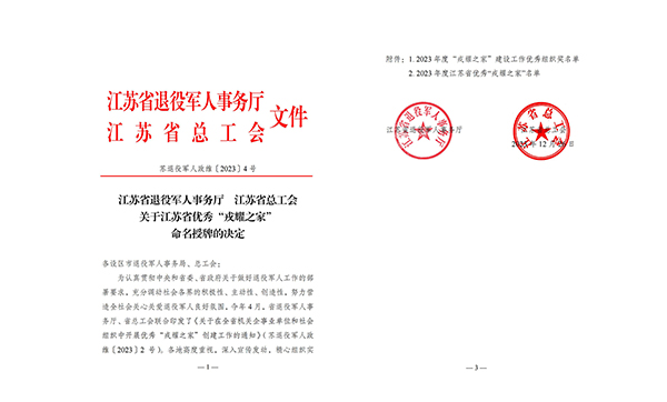 近日,江蘇省退役軍人事務(wù)廳、江蘇省總工會聯(lián)合發(fā)布了《關(guān)于優(yōu)秀“戎耀之家”命名授牌的決定》,鹽城市灌東鹽場發(fā)展有限公司被授予“2023年度江蘇省優(yōu)秀‘戎耀之家’”。2024-01-02 -